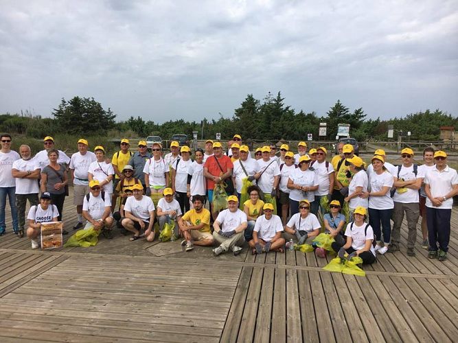 10 quintali di rifiuti, principalmente di plastica, raccolti da oltre 150 volontari che, questa mattina, hanno partecipato a una giornata di pulizia in riva al mare a Marina di Vecchiano per sensibilizzare l’opinione pubblica su quanto ciascuno può fare per dare una mano all’ambiente. Volontari delle sezioni soci Coop e delle associazioni del territorio, di Circolo Legambiente Pisa, studenti del Liceo artistico statale di Porta Romana e Sesto Fiorentino, muniti di guanti, bustine per i rifiuti e maglia con il logo Arcipelago pulito, hanno setacciato un tratto di spiaggia, raccolto un campionario vario di oggetti e concluso la mattinata con una degustazione di frittura di paranza dell’Arcipelago toscano. L’iniziativa di oggi è stata promossa da Unicoop Firenze e Legambiente, in collaborazione con il Comune di Vecchiano, la sezione soci Coop Valdiserchio Versilia e l’Ente Parco Regionale Migliarino San Rossore Massacciuccoli, nell’ambito della campagna Arcipelago pulito, il progetto sperimentale che ha messo in fila tanti soggetti, dal Ministero dell’ambiente a Regione Toscana, Legambiente e Unicoop Firenze fino alle cooperative locali di pescatori, uniti dall’obiettivo di rendere più pulito il braccio di mare di 300 km tra Livorno e Grosseto.
