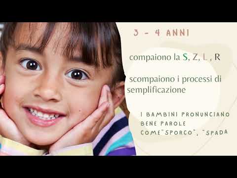 - 3 – 4 anni Scompaiono i processi di semplificazione e compaiono la S, Z, L , R perciò i bambini pronunciano bene “sporco”, “spada” “alzare”