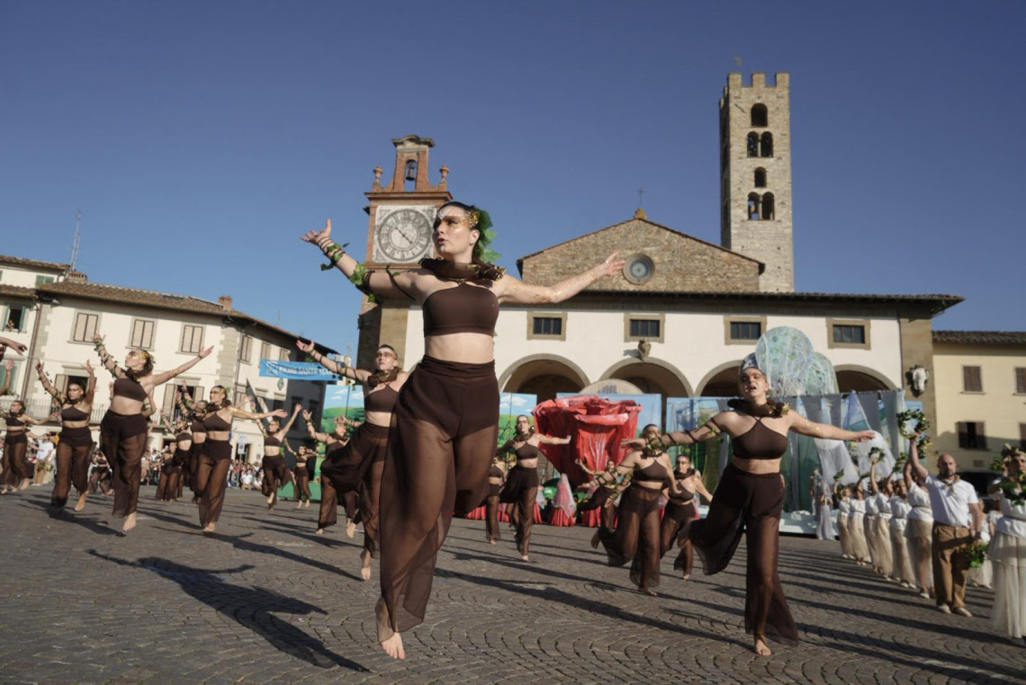 Lo spettacolo vincitore, messo in scena dal Rione delle Fornaci, ha raccontato la storia della vite e della rosa, simboli intrecciati di amicizia e vita, ispirandosi a un’antica tradizione contadina. La rappresentazione ha proposto una narrazione intensa e attuale: la rosa, innamorata dell’uomo-muffa, subisce violenza e muore, metafora del dramma della violenza di genere.