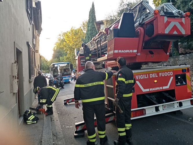 Galluzzo: cede albero, tronco in strada, traffico in tilt