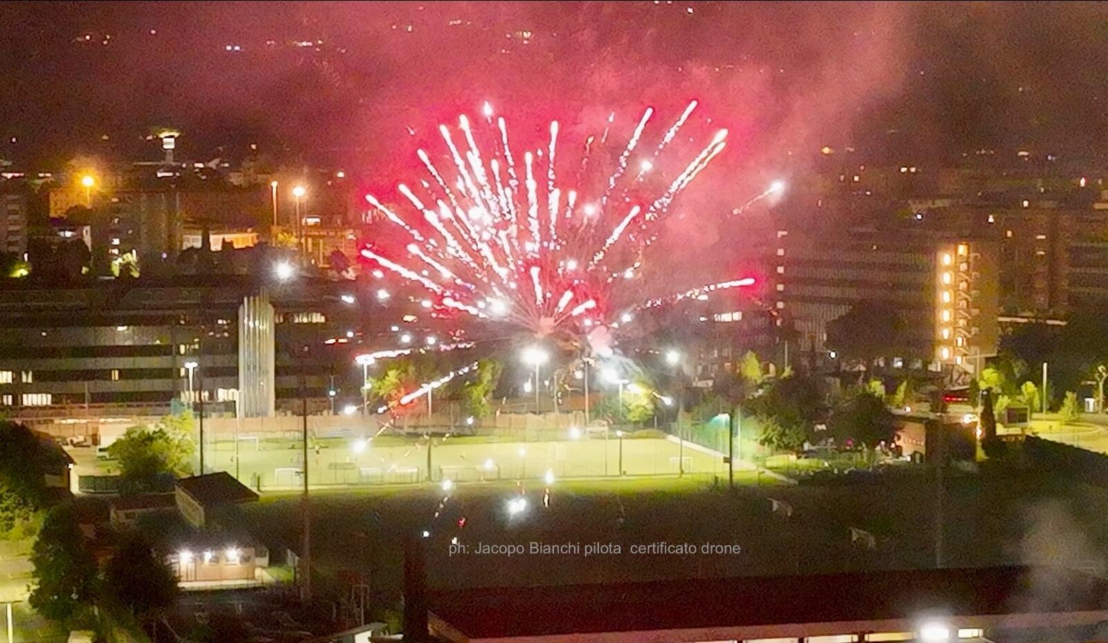 Belli e poetici i fuochi d'artificio finali, ripresi dalla telecamera del drone di Jacopo Bianchi, pilota certificato. E con tutta la passione che racconta lo striscione: il mostro azzurro mangia gli altri colori e il boccone più grosso è bianco. Uno striscione che tornerà in piazza Santa Croce in occasione del prossimo torneo del gioco fiorentino, per suscitare intense emozioni di parte.