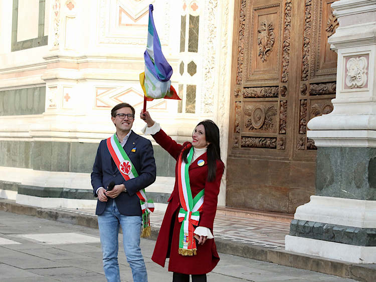 "Grande Firenze, grande Toscana, grande Italia. Sono felice di vedere questa piazza nuovamente irradiare a tutta l'Europa la sua vocazione alla pace e l'auspicio che si arrivi presto ad una tregua", ha detto il presidente della Regione Eugenio Giani.