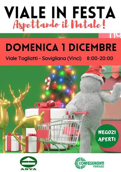 A Sovigliana e Spicchio torna Viale in festa e lo fa “Aspettando il Natale”. Domenica 1 dicembre dalle 8 alle 20 Viale Togliatti sarà infatti interamente dedicato ai consueti banchi del mercato. Viale in Festa – Aspettando il Natale sarà l’occasione per introdurre il natale vinciano a Sovigliana e Spicchio, poiché oltre ai banchi classici saranno presenti anche banchi di artigianato natalizio. Viale in Festa - Aspettando il Natale anticipa l’iniziativa di Natal’è Insieme, la serie di date dedicate ai mercatini natalizi su Viale Togliatti a cura dei commercianti di Sovigliana e Spicchio (sabato 7, sabato 14 e sabato 21 dicembre).
