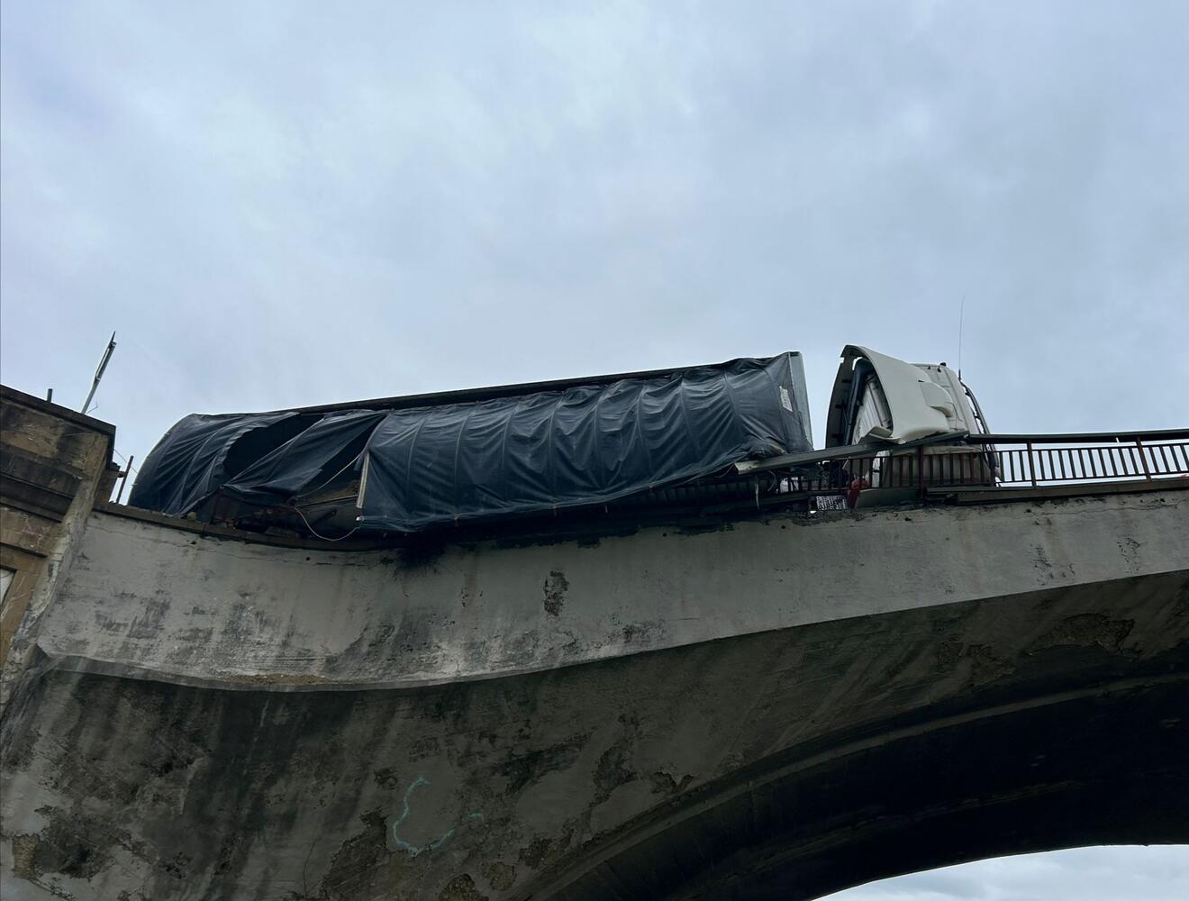 Un tir si è ribaltato per adagiarsi su un fianco sul Ponte della Vittoria direttrice piazza Gaddi. È accaduto oggi poco dopo le 14. Da una prima ricostruzione della Polizia Municipale supportata dalle immagini delle telecamere cittadine, il mezzo pesante in uscita dal sottopasso Vittorio Veneto per ragioni da accertare si è inclinato sul lato destro per poi adagiarsi sulla spalletta del Ponte della Vittoria.