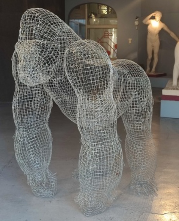 Le sculture animalier - gorilla, coccodrilli, impala, scimmie - evocano luoghi selvaggi e lontani e invitano a riflettere sul legame che l’uomo ha instaurato con il mondo animale. Misterioso e al contempo straniante è il dialogo tra le sculture della collezione permanente e gli animali in rete metallica dell’artista che si arrampicano sulle mensole, tentano di mimetizzarsi tra i gessi, presidiano imponenti le sale.