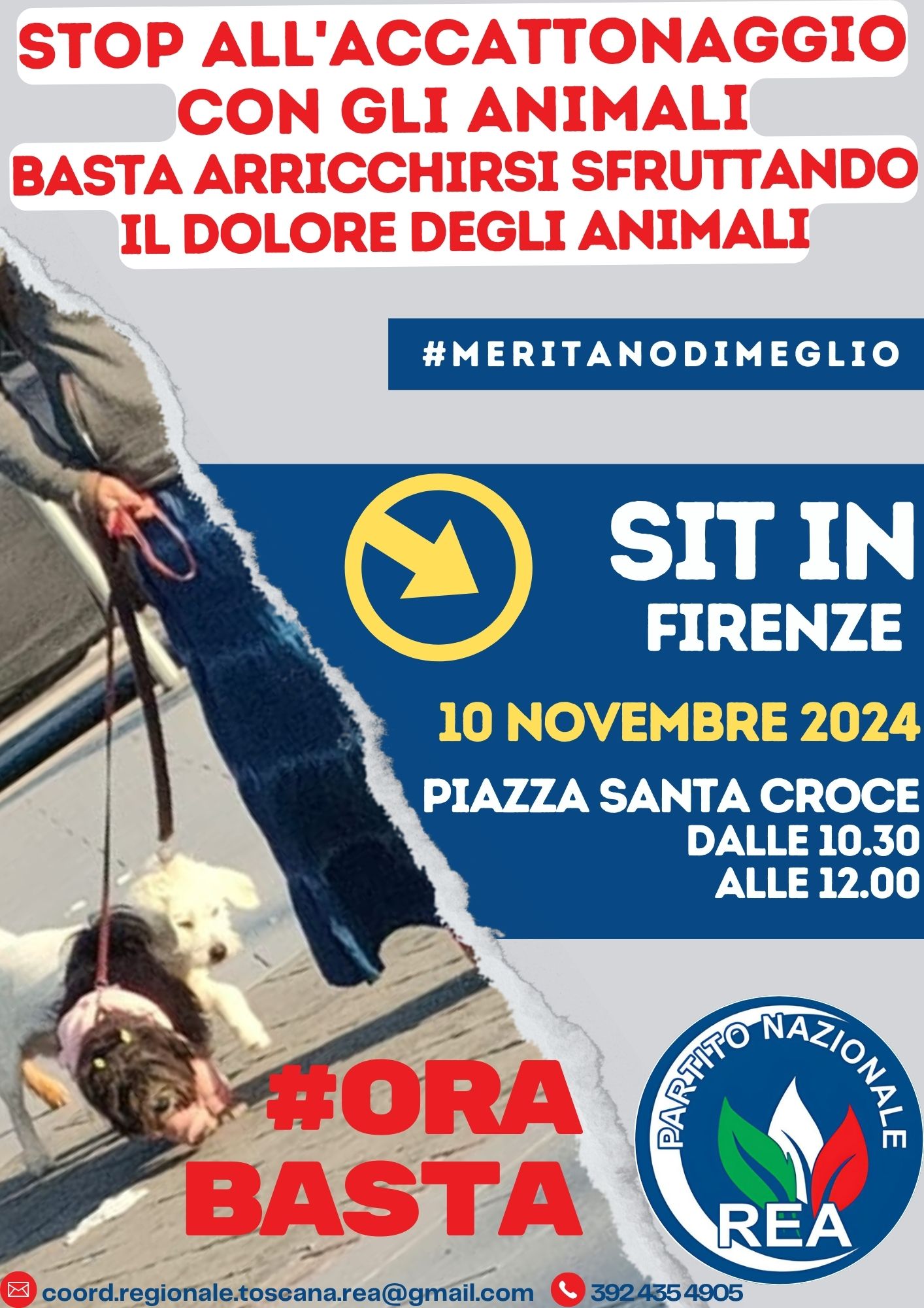 Il partito politico REA ha deciso di sostenere il sit-in per ricordare alle istituzioni comunali gli impegni nei riguardi dei cittadini e il loro ruolo di garante per il benessere degli animali, a tutela dei loro diritti: "Non vogliamo più vedere animali sfruttati in strada per arricchimento personale. Gli animali meritano rispetto e cura, non l'abuso e lo sfruttamento per fini economici" commenta il coordinatore regionale Toscana Simone Scavullo, promotore dell’iniziativa.