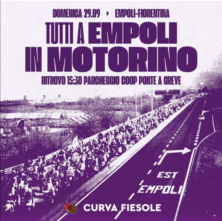 Tutti in motorino a Empoli. I tifosi viola hanno organizzato questo maxi esodo che periodicamente si ripete.Il ritrovo è fissato domenica 29 settembre alle 15,30 nel parcheggio della Coop di Ponte a Greve.