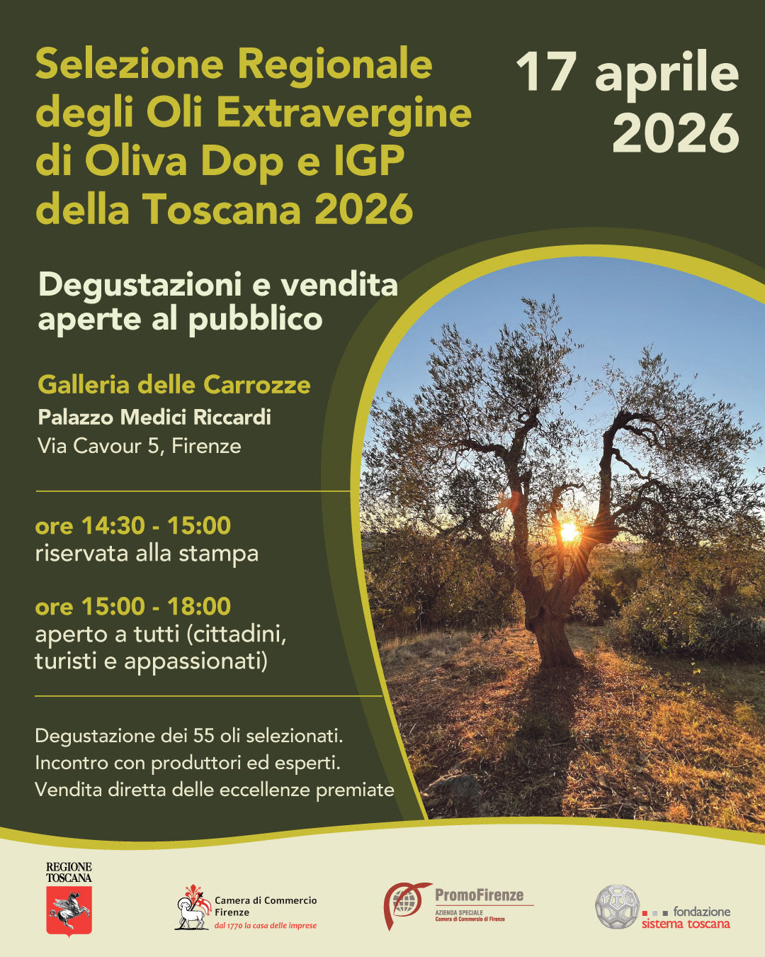La Toscana si prepara a celebrare l’eccellenza della sua produzione olivicola con l’edizione 2026 della Selezione degli Oli Extravergine di Oliva DOP e IGP. L’evento, promosso dalla Regione Toscana in collaborazione con la Camera di Commercio di Firenze, PromoFirenze e Fondazione Sistema Toscana, rappresenta ormai il consolidato "green carpet" della produzione olearia regionale, unendo l’approfondimento strategico alla valorizzazione dei produttori.