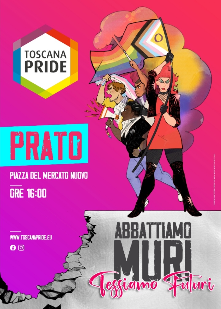 ABBATTIAMO MURI, TESSIAMO FUTURI. È questo il claim del manifesto del Toscana Pride 2025, realizzato da Agnese Puccinelli. Sabato 21 giugno a Prato migliaia di persone attraverseranno le strade di Prato per rivendicare più diritti e meno privilegi.