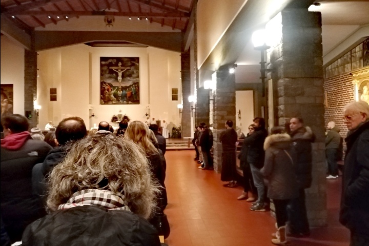 All'inizio della funzione, l'Adorazione eucaristica con l'arcivescovo, i parroci don Floriano (San Felice a Ema) e don Francesco (San Giuseppe al Galluzzo) mentre il Vangelo (le Beatitudini) è stato letto dal diacono Carlo. Presenti in chiesa anche don Bernardo della Certosa, don Primo e un francescano.