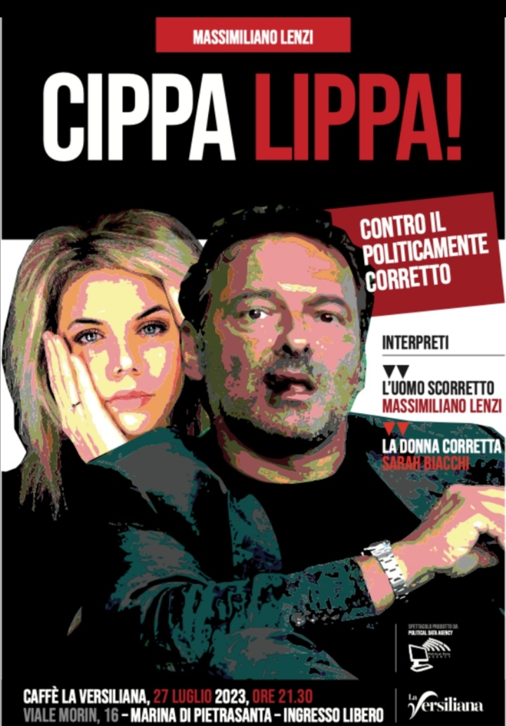 Marina di Pietrasanta ( LU) _ Il 44° Festival La Versiliana si arricchisce di un nuovo appuntamento a ingresso libero per la serata di giovedì 27 luglio. Alle 21.30 presso lo spaio Caffè della Versiliana sarà in scena “Cippa Lippa! Contro il politicamente corretto”, una serata show scritta da Massimiliano Lenzi, e interpretata da Sarah Biacchi, nel ruolo della donna politicamente corretta e da Lenzi, nei panni dell’uomo scorretto.